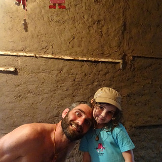 Après toutes ces semaines de baroude, ce bivouac d'une semaine à Marindia, qu'on espérait reposant, fut plutôt épuisant. Un voyage comme ça est une perpétuelle organisation. Et les moments d'immobilité sont d'abord des moments de grande logistique : la lessive du mois - des sacs de couchage qui sentent la lavande, quel bonheur! -, des vélos à entretenir et réparer, des cheveux à couper (rassurez-vous, ce ne sont pas ceux de Maïa) et, aussi, l'opportunité d'aider Aude et Nando sur les travaux de la maison. Quand nous sommes arrivés, ils commençaient une nouvelle couche de torchis dans la chambre de Sasha, qui sera celle de Maïa bientôt. Et comme les nuits peuvent être froides en hiver, ce sera peut-être Maïa qui en profitera la première : logique, donc, qu'on y participe, et nous repartirons avec la satisfaction d'avoir terminé ce chantier.