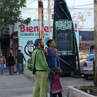 Nacho nous emmènera à un autre lieu fort des alternatives rosarinas. La Toma est un ancien centre commercial, repris par ses salariés lorsque le propriétaire est reparti avec la caisse, jugeant l'endroit trop peu rentable pour ses ambitions. Depuis, cette coopérative est devenue à la fois une cantine pour étudiants, un centre culturel proposant cours de danse, de théâtre et de yoga, une bibliothèque - dénommée « Frederich Engels », le ton est donné -, un café et un magasin proposant les produits de base à prix cassés et un éventail de fruits et légumes fourni par un des jardiniers des huertas de la ville, donc sur les principes de l'agro-écologie. Tout cela à des prix très populaires, et en plein cœur de la ville. Confrontés à une crise très dure il y a une quinzaine d'années, les Argentins ont su relever la tête, notamment avec ce type de micro-projets, en mettant le collectif et l'autogestion au centre de leur philosophie, une vingtaine d'années après une dictature dont le but avoué était de faire disparaître tous les éléments un peu rouges de la société. Dans la ville de Che Guevarra, le collectif n'est toujours pas un vain mot.