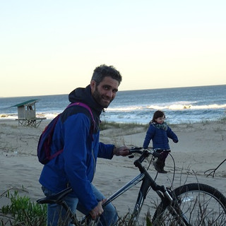 Et puis, encore du bus, une dernière fois. C'est la maison de Fabrice, notre ami millionnaire, qui nous attend. Il nous avait en effet proposé de profiter de son autre maison, un palais en bois posée juste devant la plus belle plage de La Pedrera, une de ces stations balnéaires magnifiques, bondées en été et désertes en hiver. Cette maison est habitée par le gérant de son complexe de cabanas, qui se trouve à deux pas. Celui-ci étant en vacances à l'autre bout du monde, il a quand même fallu négocier avec sa mère, Nilsa, qui semblent s'être quelque peu octroyé l'usufruit de ce bien. Finalement, la mère acceptera de nous laisser les clés, en les cachant tellement bien dans le jardin qu'il a fallu l'aide d'une de ses amies pour les découvrir, et après nous avoir fait croire que La Pedrera est un repaire de bandits assoiffés de sang et de porte-monnaie l'hiver venu. Nous n'aurons rien vu de tout ça, mais plutôt ce qui ressemblerait à un petit paradis sur terre : de la grande baie vitrée de l'étage, nous avions une vue imprenable sur l'océan ; il suffisait de mettre un pied dehors pour se retrouver sur la plage ; et quand le sable nous saoulait, on pouvait se réfugier dans le jardin, à l'abri du vent, avec comme bruit de fond la douce mélodie des vagues s'échouant sur le rivage. Sans doute est-ce parce que l'être humain s'embourgeoise très rapidement, nous aurons quand même le culot d'avoir une petite déception : c'était le tout début de la période de migration des baleines, qui passent se balader par là. Donc, théoriquement, devant notre baie vitrée. Malheureusement, malgré une fausse alerte de Sylviane qui ébranla toute la maison, pas une trace de la plus petite baleine qui soit. Dommage pour nos deux voyageuses, partie remise pour nous.
