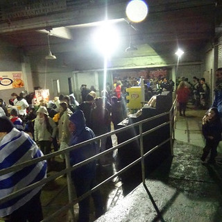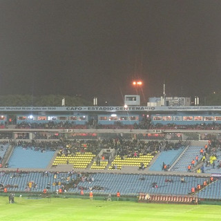 Si ce n'est pas un temps à mettre un Uruguayen dehors, une seule chose peut les faire sortir de chez eux, affronter la pluie et la tempête : le Football. Avec un grand F. Alors qu'une tempête était annoncée, nous n'étions pas loin de remplir les 100 000 places du stade Centenario lors de la rencontre des éliminatoires de la Coupe du Monde entre l'Uruguay et le Paraguay. Bien plus qu'un match, ce fut l'occasion de découvrir un véritable monument historique. Construit pour la première Coupe du Monde, en 1930, et en un temps record - « aujourd'hui, les Uruguayens ne pourraient jamais le refaire » témoigne, désabusé, le réparateur de vélos du coin – il est resté tel quel, depuis près d'un siècle. Alors que les stades européens se rénovent, se reconstruisent, deviennent de vrais parcs d'attractions, namé – comme ils disent - par les grands marques d'assurances ou de paris en ligne, pour faire rentrer le football dans l'ère de l'entertainement – comme ils disent aussi -, attirer des classes sociales toujours plus aisées, celles capables de débourser une fortune pour un match ; ici, le foot reste simplement une passion. Une passion populaire. Rien n'a changé depuis 1930 : le couloir menant aux gradins transpire des générations de supporters ayant emprunté ces escaliers ; seule l'affiche proposant les tortas fritas permet de nous situer – à peu près – au 21ème siècle. A l'intérieur du stade, nous sommes à l'extérieur : le Centenario n'ayant pas de toit, les supporters sont logés à la même enseigne que les joueurs, c'est-à-dire sous des rafales de vent humides ce jour-là.