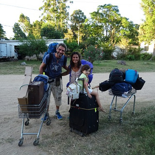 De recherche spirituelle, il n'en sera pas question pour nous, lorsque le bus nous lâchera au bord de la 4 voies à hauteur de Marindia, avec notre pyramide de bagages. C'est plus d'une solution concrète qu'il nous fallait trouver pour faire passer tout ce bardas de l'autre côté de la route, un dimanche soir de pré-rentrée, quand toute la classe moyenne de Montevideo rentre tambour battant à la maison et qu'il n'y a pas de feu rouge pour les arrêter. Et puis, tel un miracle divin, un embouteillage se produisit devant nos yeux, nous permettant tranquillement d'aller emprunter les caddies de l'épicerie voisine et traverser tranquillement la route, devant des automobilistes qui se demandaient d'où venait cette famille de Romanichels qui les narguait avec leur envieux statut de piéton. Et nous de nous rendre compte qu'en passant de la carriole à vélos au caddie de supermarché, nous descendons d'un coup de plusieurs classes sociales dans la société uruguayenne. Dumas, notre ami gérant du camping de Marindia chez qui nous allions passer quelques jours, mit bien 30 interminables secondes, immobile, impassible devant nous, avant de comprendre que cette apparition n'était pas due à la politique migratoire de Manuel Valls à l'autre bout du monde. « Gwendal, Céline ! Vous êtes rentrés ! » Oui, on est un peu rentrés à la maison. Notre maison hivernale mais en beaucoup plus chaud. Retour au point de départ ? Plutôt le début d'une nouvelle aventure.
