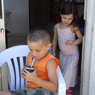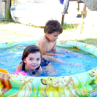 Une fois débarassés de nos bilig, ce fut alors la tournée des au revoir, qui pourraient se transformer en adieux. Le passage par le bar de Tabaré, notre premier contact dans ce village, le seul troquet ouvert ici été comme hiver, était obligatoire. C'est que non seulement la caïpirinha est bonne, mais c'est que nous avons également vendu la carriole de Maïa à Tabaré, tellement heureux de l'aubaine – on ne compte plus le nombre de personnes regardant avec envie ce carrosse moderne – qu'il nous arrosa aussi le gosier. Nous étions passés juste avant dire au revoir à nos trois amis italiens, tenant le bar-qui-ne-dort-jamais (ou presque) sur la place la plus festive de Punta, des cernes pleins les yeux, excédés de ne dormir que 3 heures la nuit, ou plutôt le matin, quand ils ferment enfin les portes, à 9h, 10h ou 11h, c'est selon. Le résultat prévisible, mais qu'on n'avait pas connu depuis des plombes, c'est que ça donne mal à la tête, cet enchaînement d'alcools. Le lendemain, c'est donc à moitié sonnés que nous poursuivons notre tournée d'adieux – et de cadeaux : à la maison de Koakim, car nous ne sommes pas rancuniers, nous laisserons un tas de jouets que Maïa ne pouvait de toute façon pas ramener. Il fallait voir la tête de Koakim et ses frangines, qui semblaient avoir rencontré le Père Noël, Dieu et Jésus en une seule fois, nous couvrant de bisous, déballant tout dans une joie indescriptible. Victoria, elle et son sourire aux lèvres, regarde la scène, mi-heureuse pour ses enfants, mi-absente. Comme toujours. Puis elle voulut gonfler la piscine gonflable, offerte aussi par Maïa. Elle s'était mise dans un coin pendant que ses enfants continuaient à sauter de joie, et expirait ses poumons, en vain. La piscine ne bougeait pas d'un poil, même un alcootest aurait été pour elle un des douze travaux d'Hercule. Effroyable spectacle d'une femme à bout de souffle, au propre comme au figuré. Je me suis permis de l'aider et en quelques minutes, la piscine était rempli d'air. Au goût de caïpirinha, sans doute, mais au moins, elle était gonflée.